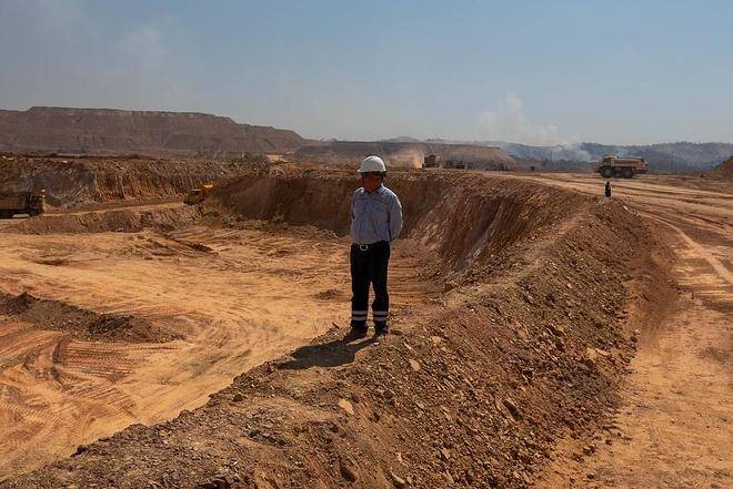 2023年6月17日,刚果(金)特恩克,中国企业洛阳钼业的员工在特恩克凡古鲁米矿的一个矿井进行调查。这是世界上最大的铜钴矿之一,位于刚果(金)东南部。