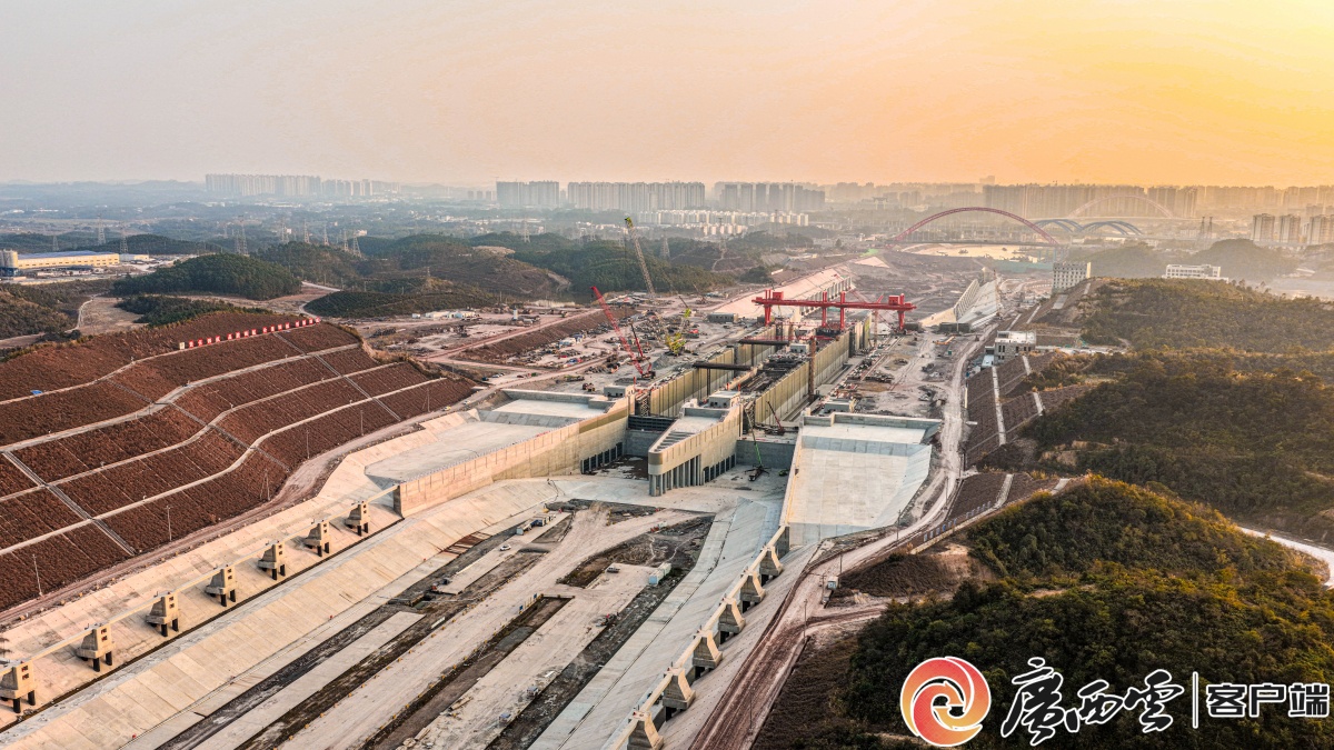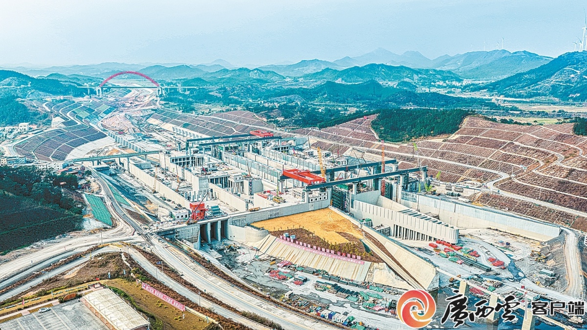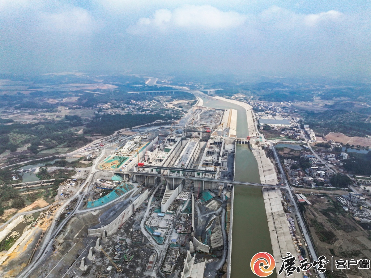 2月19日,建设中的平陆运河马道枢纽,世界级内河省水船闸主体结构已全面完工。平陆运河集团供图
